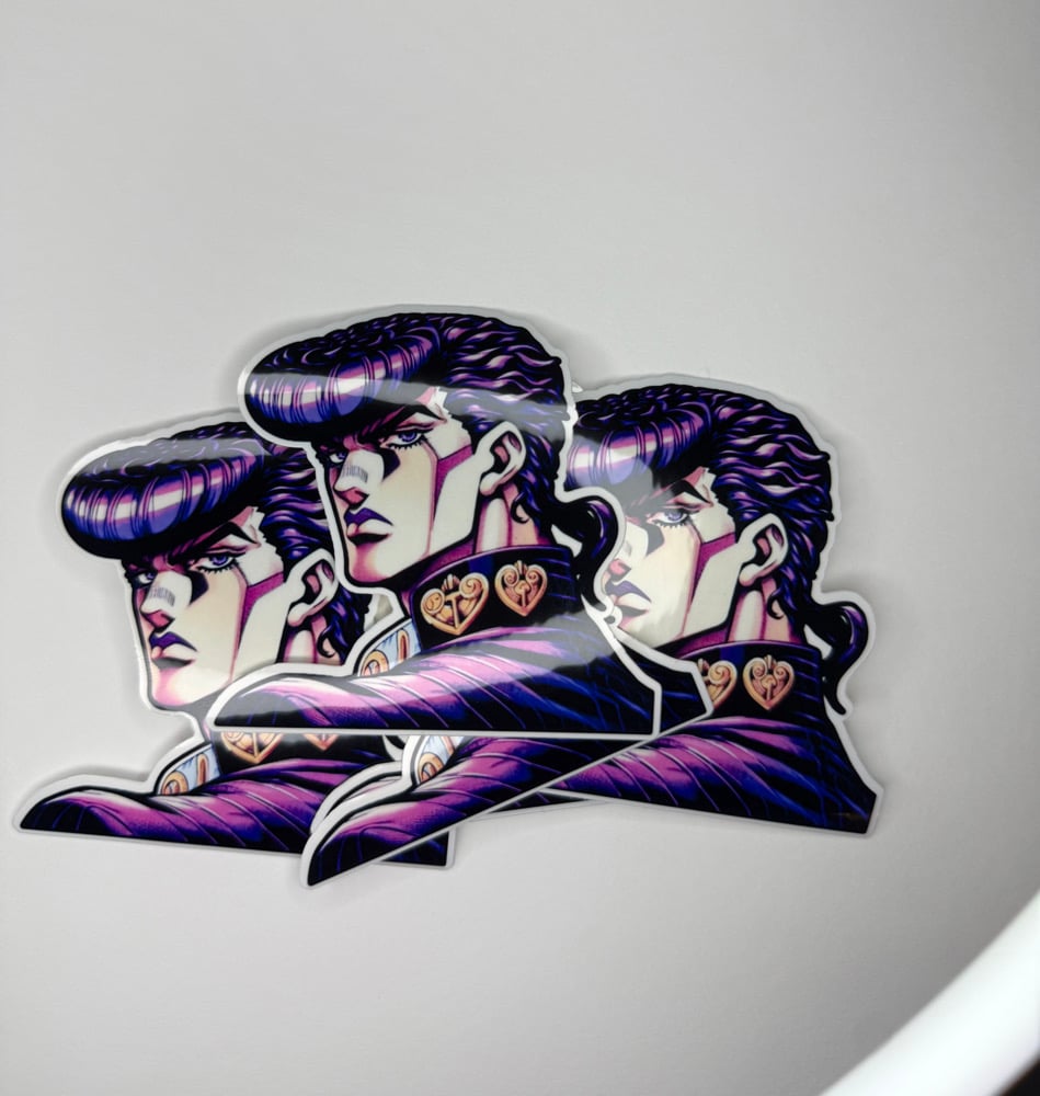 A water & UV resistant holigraphic sticker themed from JoJo’s Bizarre Adventures. Perfect as a decal for your car, cups, laptops and more.